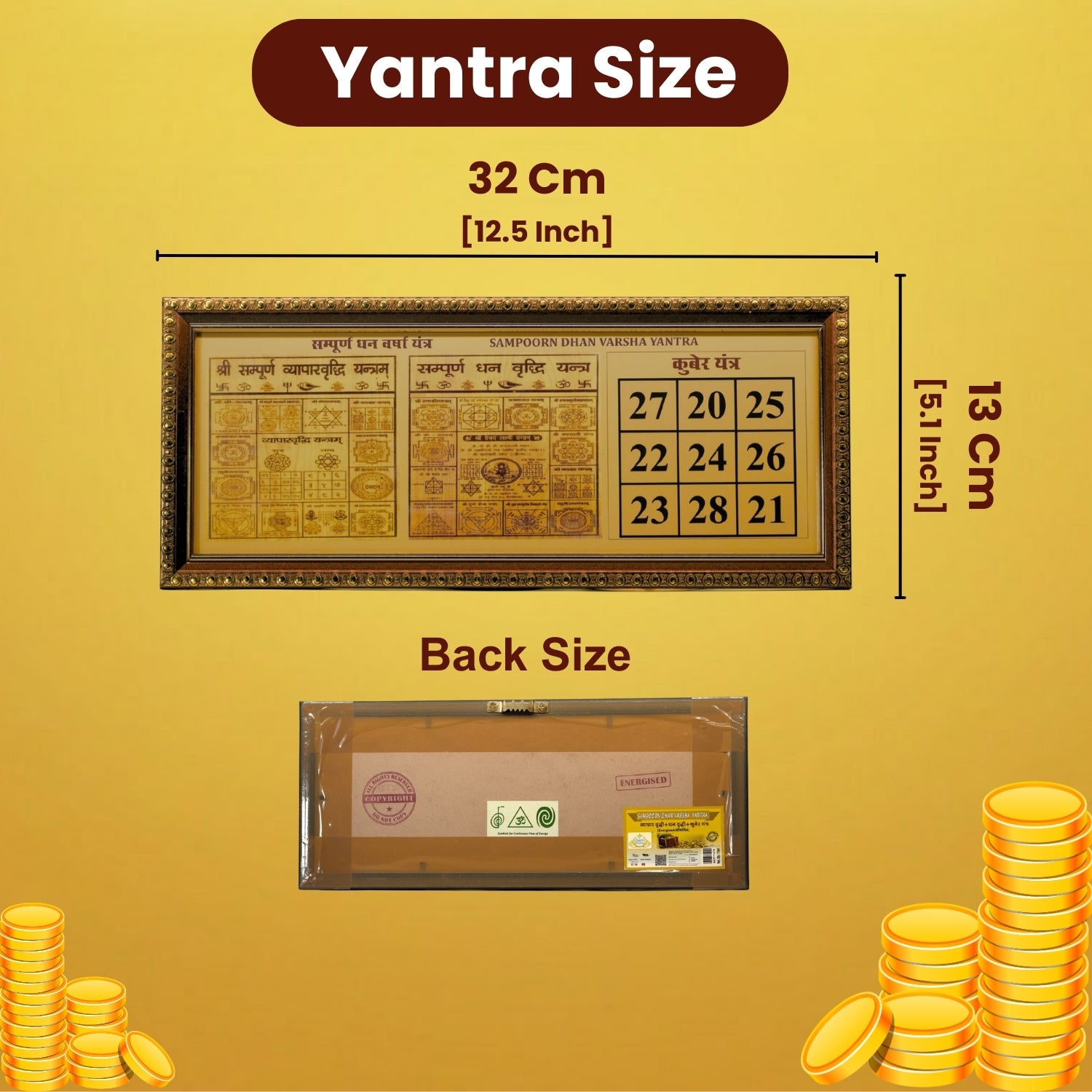 Yantra energized the place where it is placed. It get energized with the rising sun and with the divine vibrations of the North & North-East area and provides positive transformation energy through its mystical geometry.